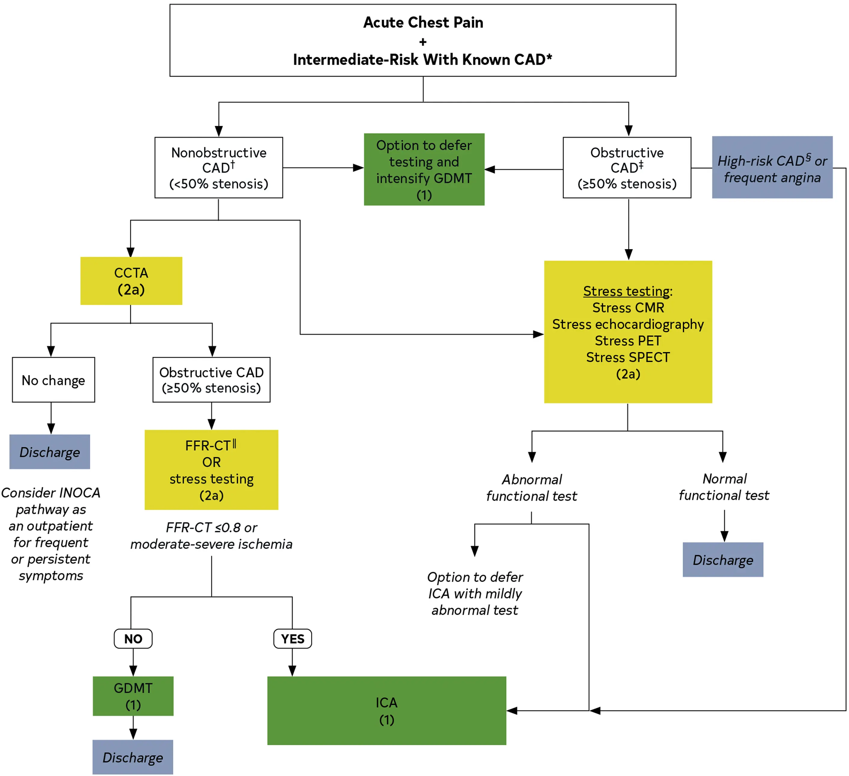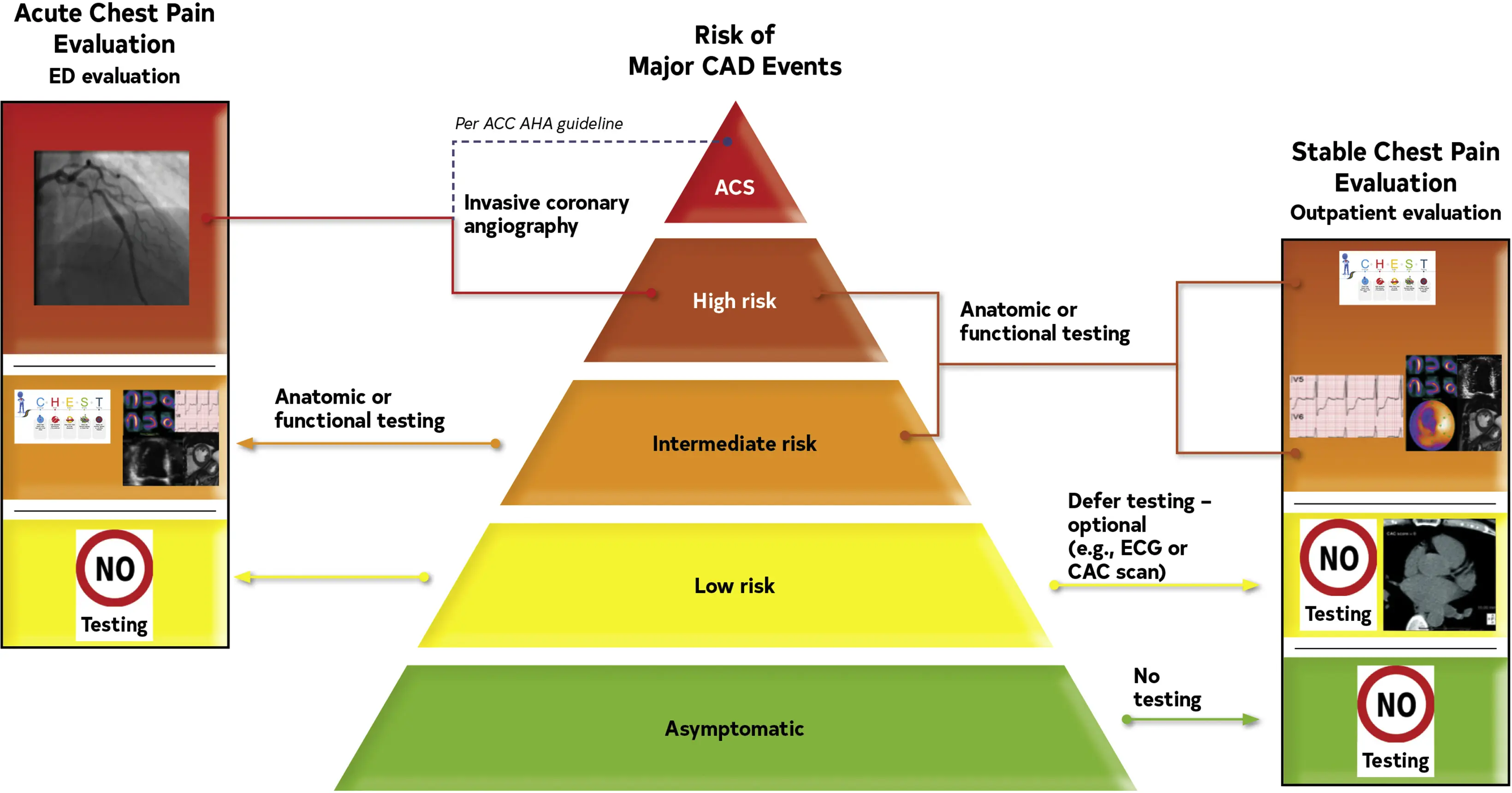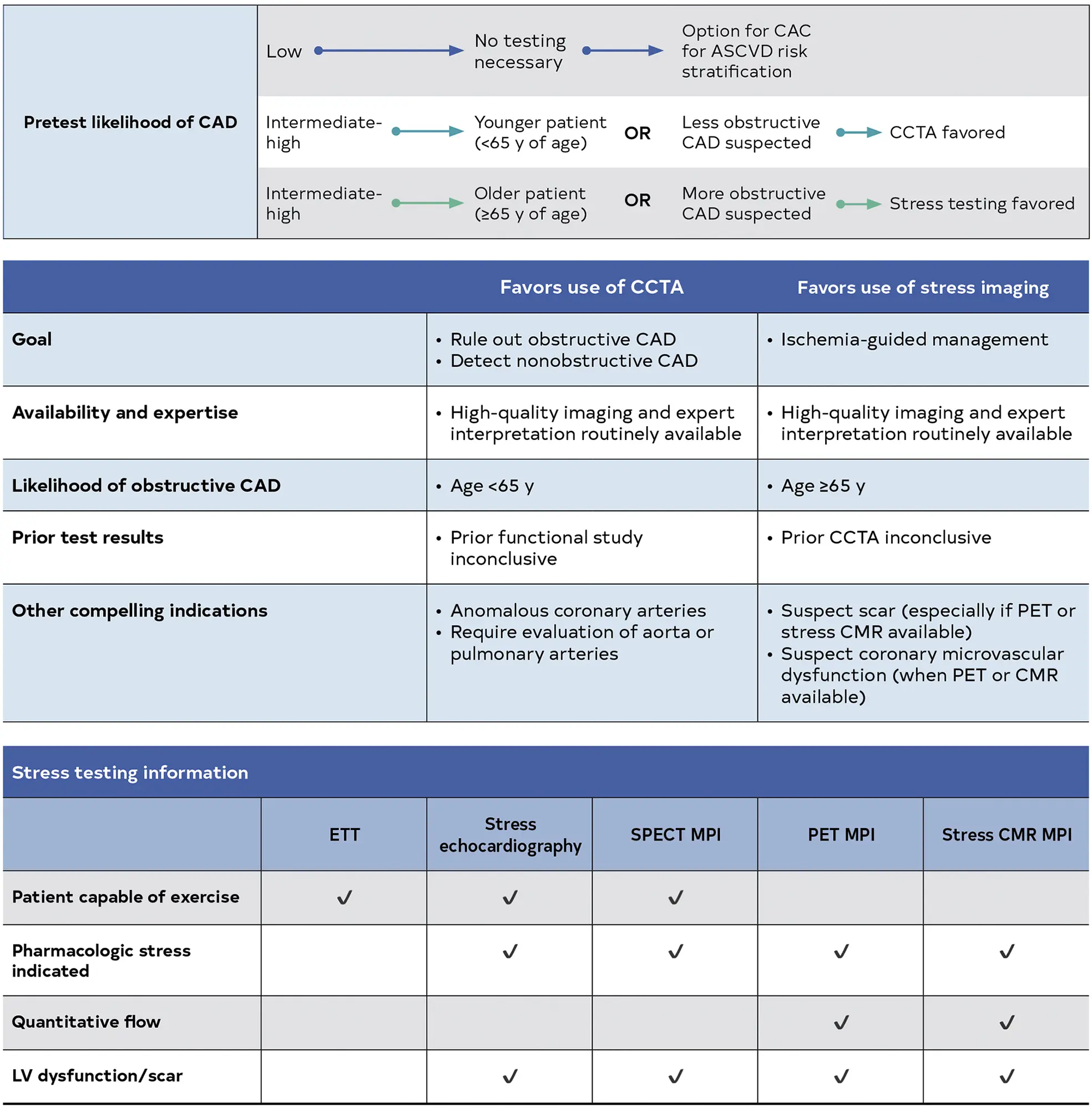 Test selection should be based on patient risk and pre-test likelihood of CAD and may be influenced by site expertise and availability1