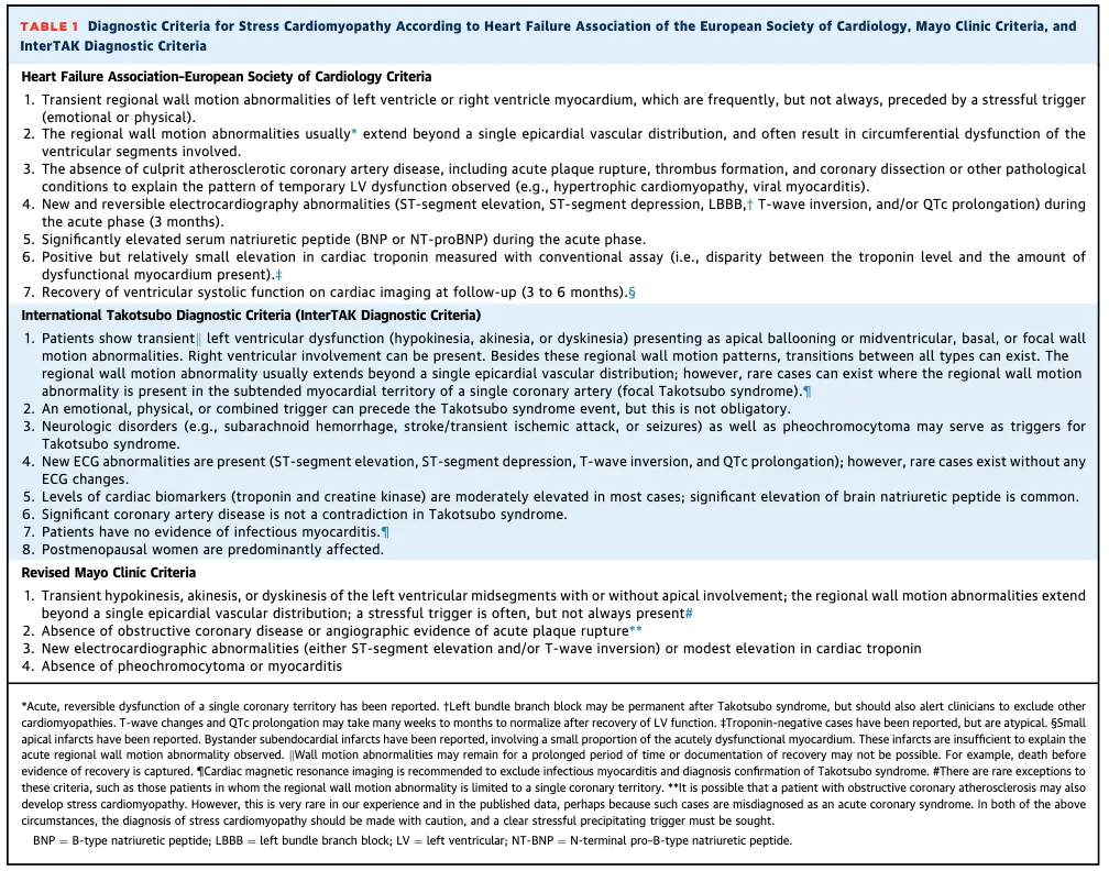 1. Medina de Chazal, H., Del Buono, M. G., Keyser-Marcus, L., Ma, L., Moeller, F. G., Berrocal, D., & Abbate, A. (2018). Stress Cardiomyopathy Diagnosis and Treatment. Journal of the American College of Cardiology, 72(16), 1955–1971. https://doi.org/10.1016/j.jacc.2018.07.072