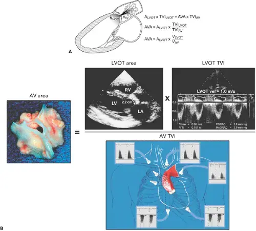 - Severe AS is characterized by a fixed valve area, resulting in an increase in transaortic velocity to ≥4 m/s (mean gradient ≥40 mm Hg) at any flow rate, but with valve area remaining ≤1.0 cm2.