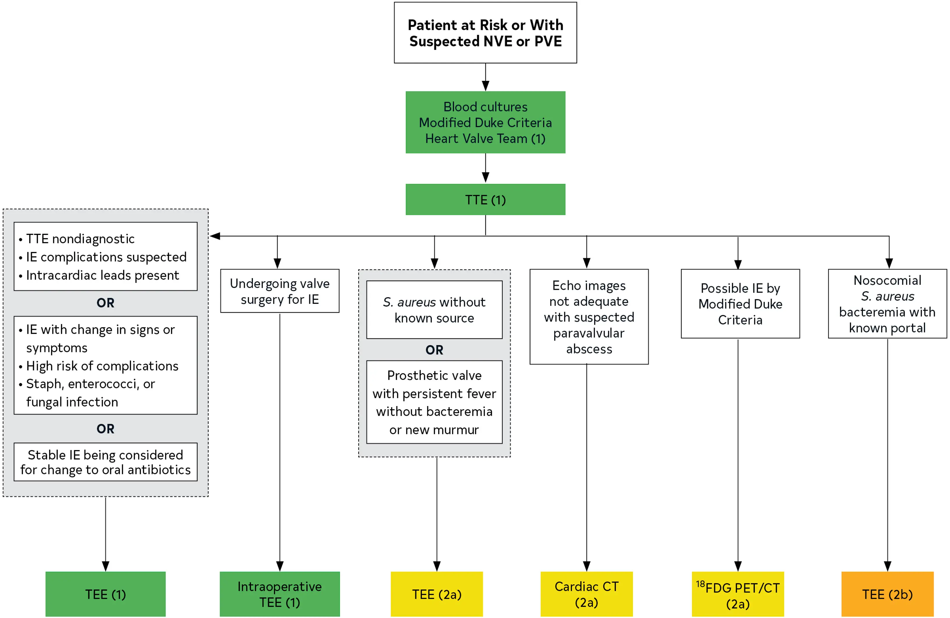 - TTE ordered to assess for vegetations, characterize the hemodynamic severity of valvular lesions, assess ventricular function and pulmonary pressures, and detect complications